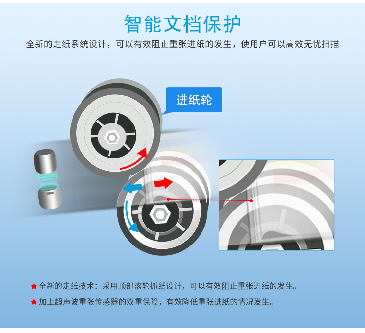 智慧型按键扫描,带超声波重张检测。