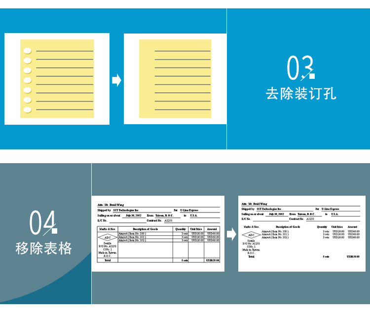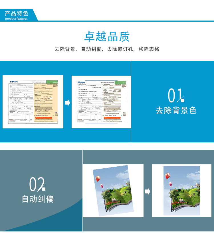 TWAIN扫描驱动软件带有智能化处理的完美页面扫描功能,完成影像的歪斜校正、原稿尺寸裁剪、去底色、旋转、去白页、加框等功能。