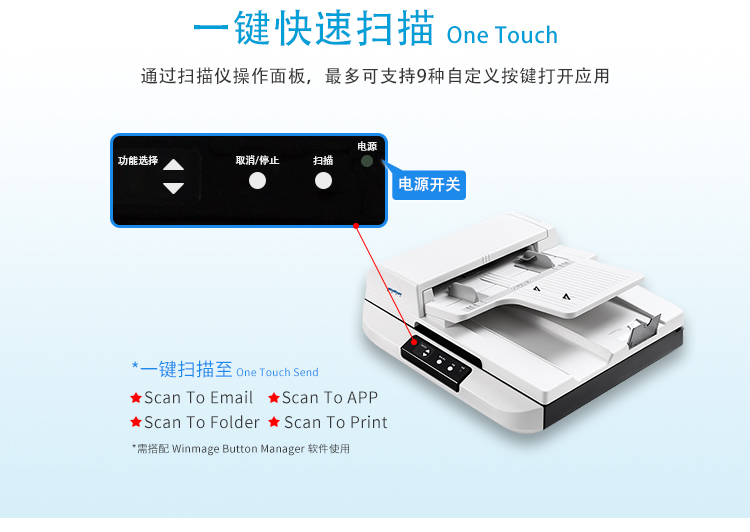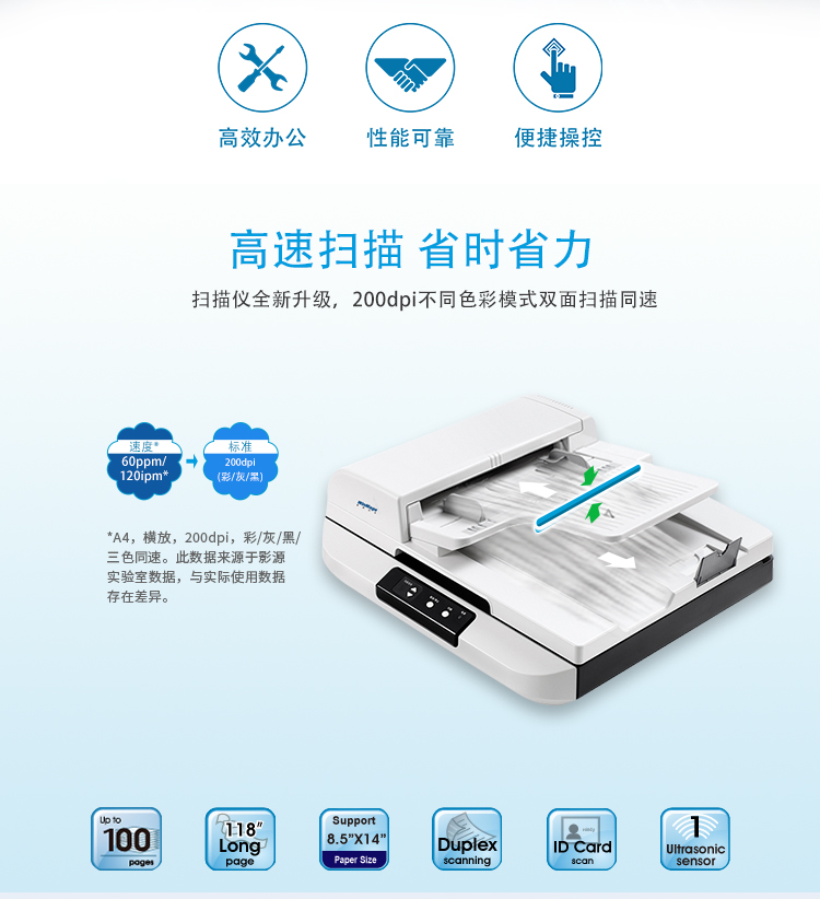 A4300dpi,黑白模式扫描速度可达每分钟50/100面。