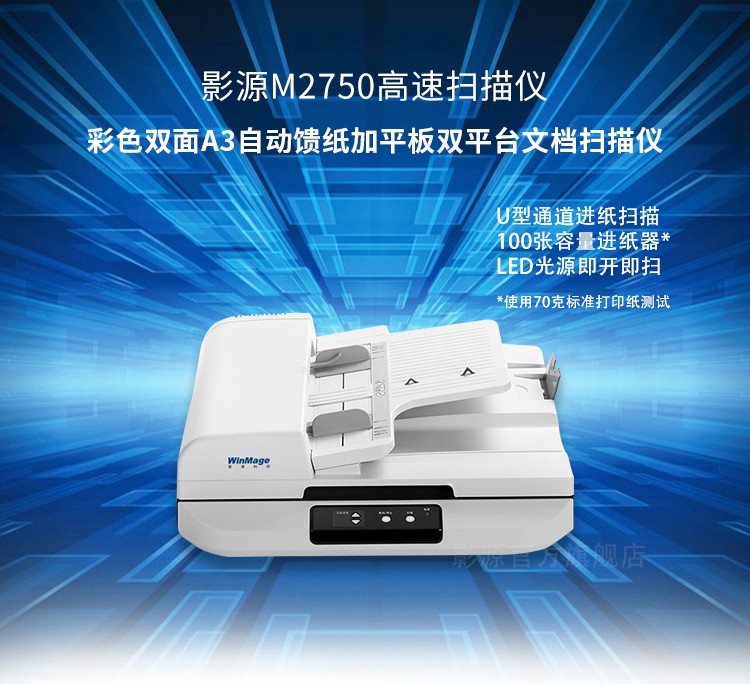 影源M2750馈纸+平板式双平台扫描仪(白 600dpi A3) 自营